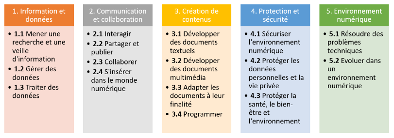 La formation numérique dispensée par l'Université Lyon 1 permet aux étudiants de développer leurs compétences dans les domaines définis par le Cadre de Référence des Compétences Numériques